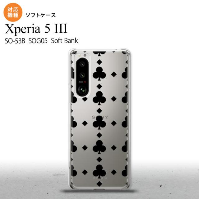 SO-53B SOG05 Xperia5?V ケース ソフトケース トランプ クラブ クリア 黒 オススメ 人気 おしゃれ スマート シンプル nk-xp53-tp531