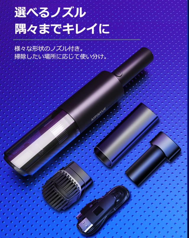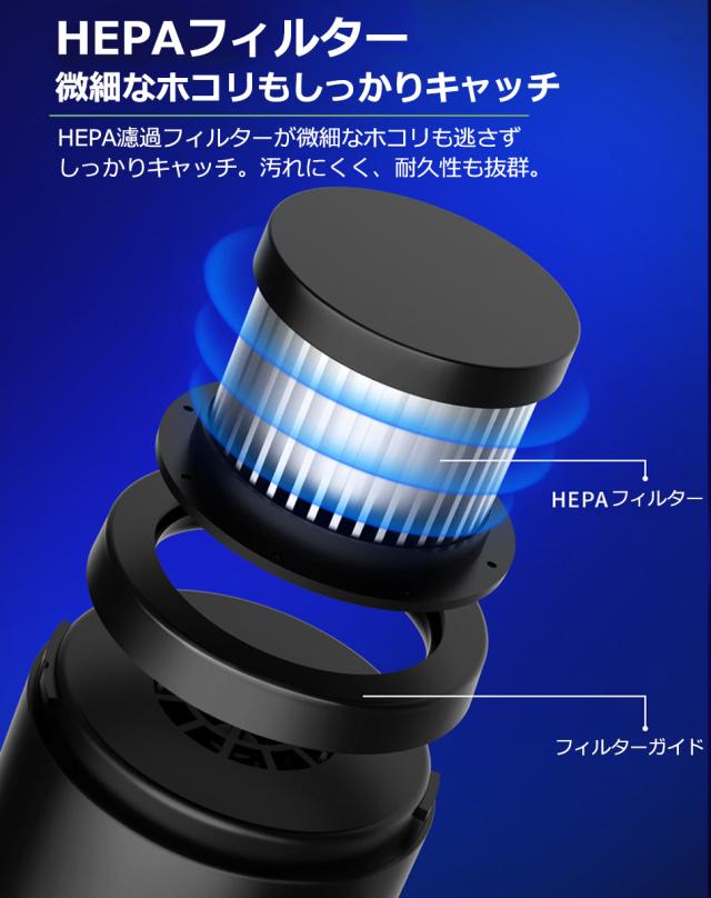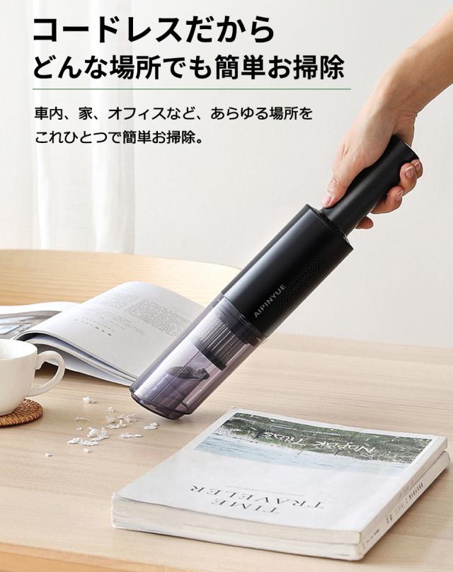 ハンディクリーナー 車載掃除機 コードレス カークリーナー 超軽量0.4KG コンパクト 車用 コードレス 充電式 6000PA吸引力 USB急速充電 ハ HEPAフィルター