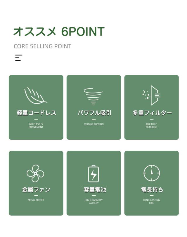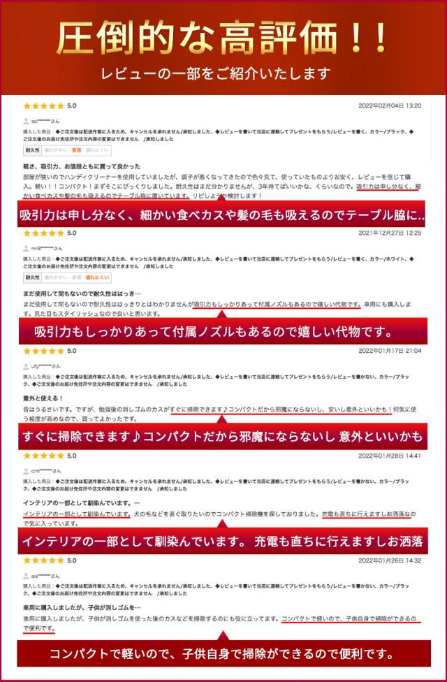 - 小さくても吸引力は十分あり、気になる時にサッと使えて便利です。