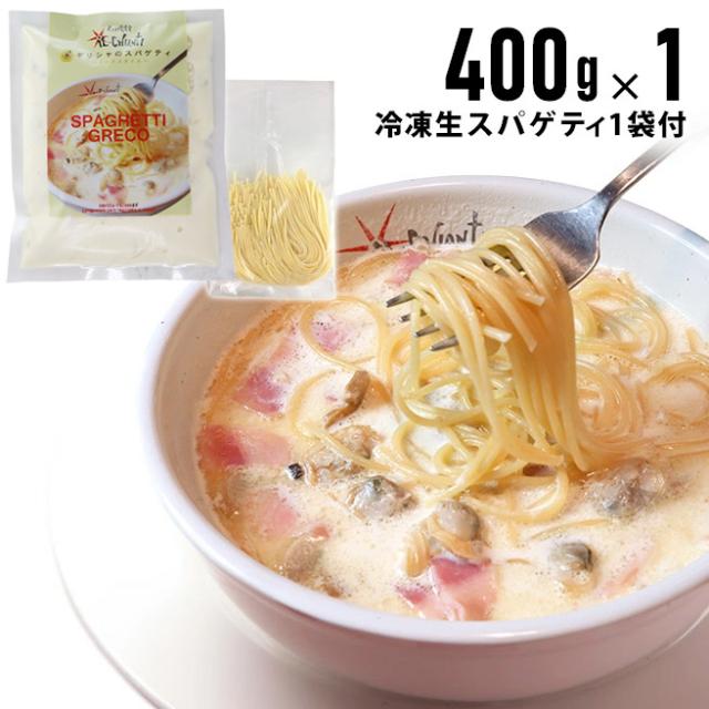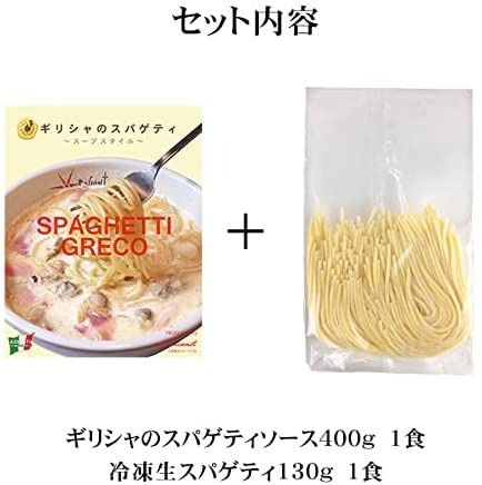 ギリシャのスパゲティ(アサリ入りガーリックホワイトスープ仕立て冷凍パスタソース) [400g×1個・生スパ1袋付]