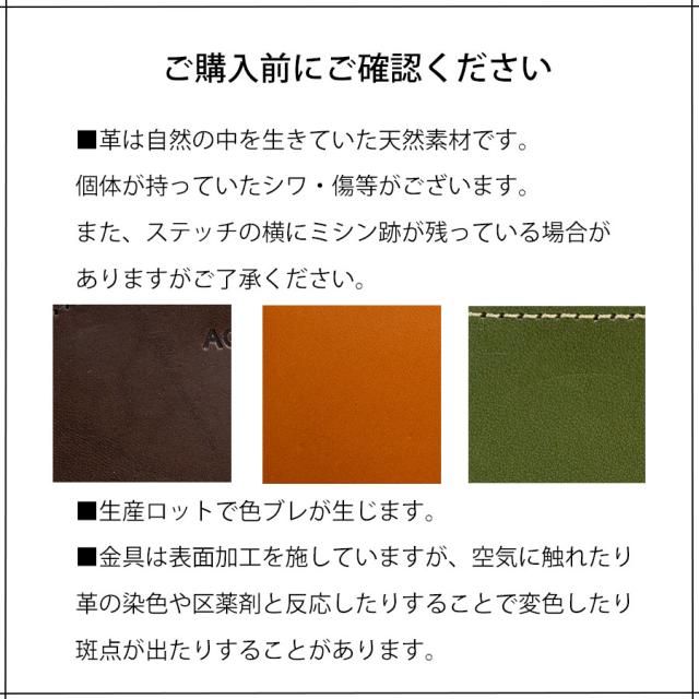 ■天然革素材のため、多少の傷があり、1点ずつ風合いが異なります。 ■気候・環境及び摩擦・水分等で、多少の色落ちがあります。 |