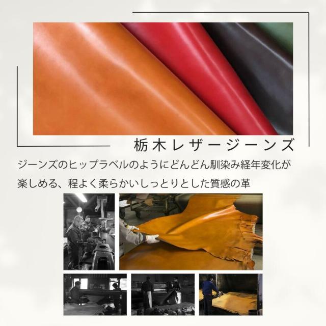 ■キラキラ可愛い箔加工革”ルーチェ”とベーシックな表情でエイジングが楽しめる革らしい革”栃木レザージーンズ”の2種類の革からお選びいただけます。専用箱入りでプレゼントにもお勧めです。