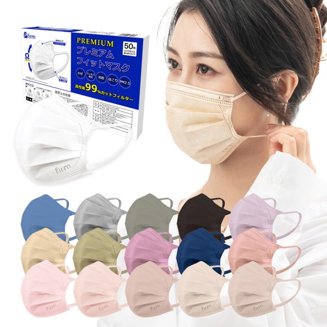 マスク Ωプリーツ オメガプリーツ 不織布マスク 50枚入 配色 血色マスク 使い捨てマスク 女性 おしゃれ firm 旅行 会社 プレミアムフィットマスク