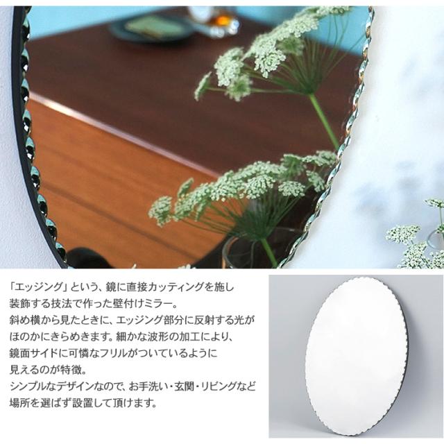商品説明:「エッジング」という、鏡に直接カッティングを施し装飾する技法で作った壁付けミラー。