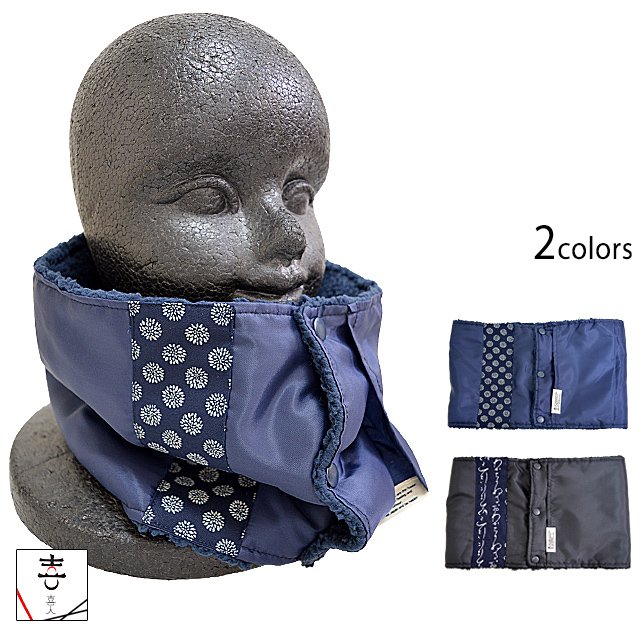 モコモコリバーシブルネックウォーマー 喜人 KJ-12910 和柄 和風 防寒 きじん 家紋 プレゼント
