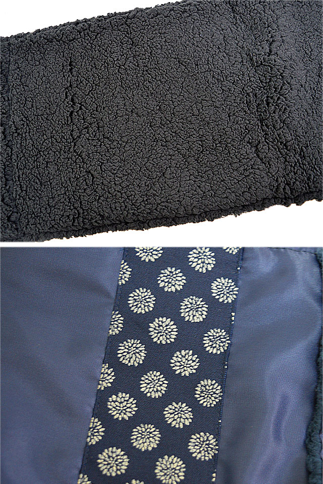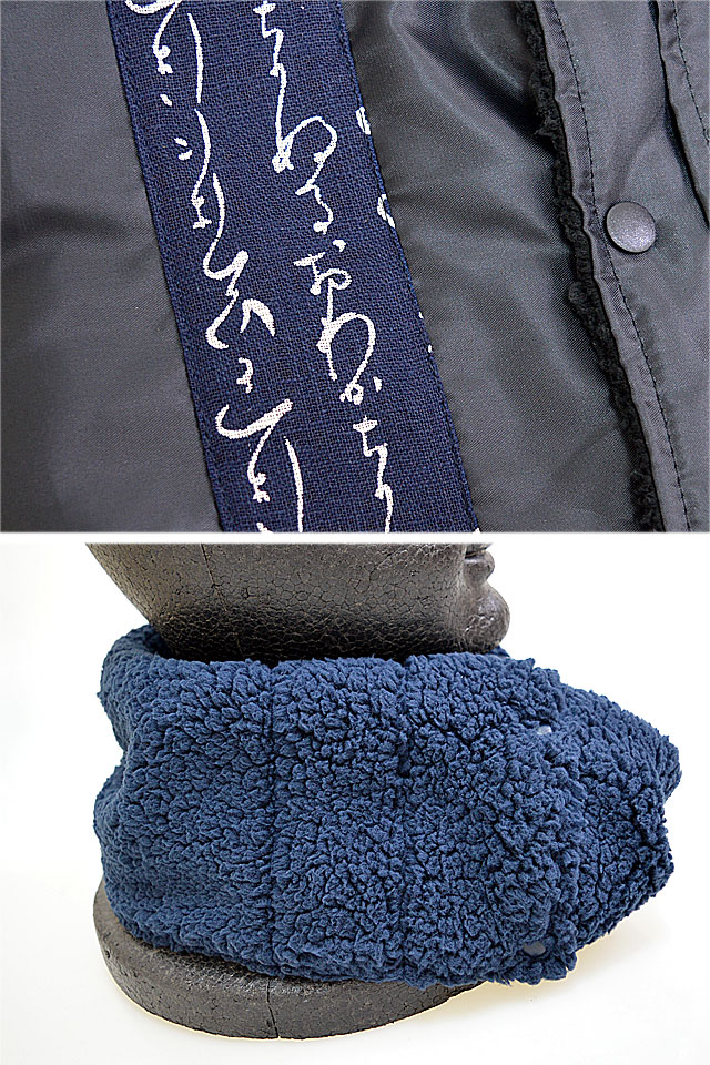 着た人、それを見た人が笑顔になれる、他にはないデザインを提供し続けている「喜人」さんから「モコモコリバーシブルネックウォーマー(KJ-12910)」のご紹介です。 襟元が寒いけどボアの襟付きは室内では暑いし、でも脱ぐと暑いし……。 片面のナイロン部分には和の生地が縫い付けられており、折り曲げると和のアクセント使いが出来るようになっています。 |
