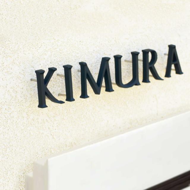 シンプルな書体で飾りすぎず、アイアン風の表札でとてもおしゃれ。