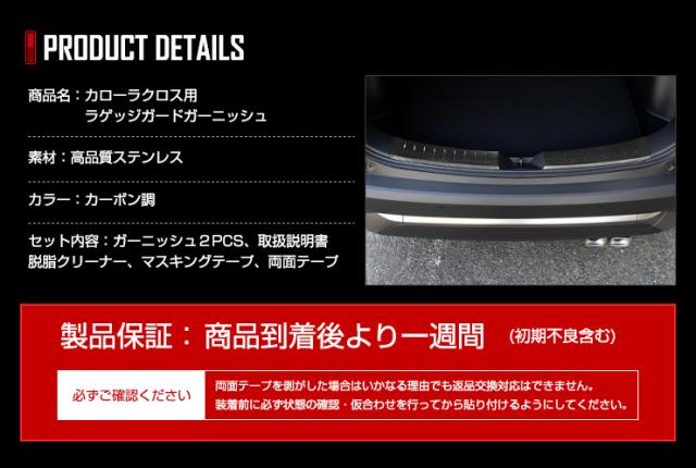 [対象商品タイムセール10%OFF]カローラクロス専用 ラゲッジガードガーニッシュ カーボン調 2PCS メッキ ガーニッシュ ドレスアップパーツ リア トランク 荷物 メッキ 高品質ステンレス