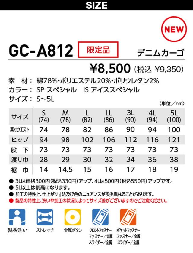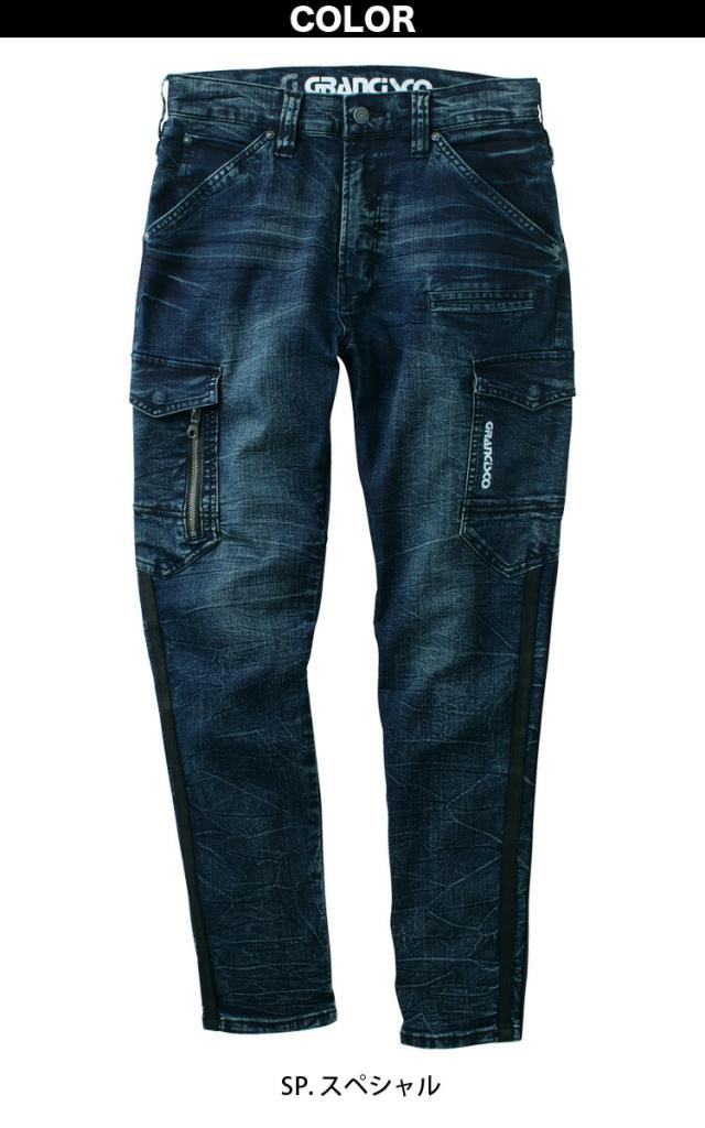 TAKAYA カーゴパンツ 作業着 高伸縮 ストレッチデニム グランシスコ オールシーズン ラインデニム GC-A812