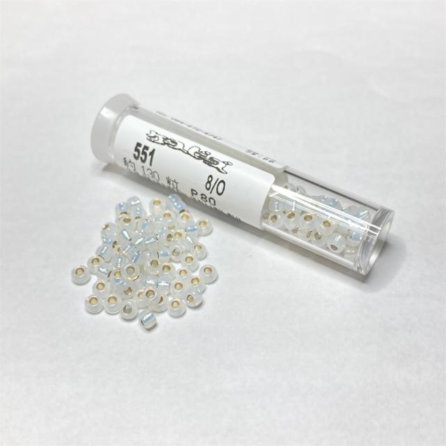 カラー番号:#551-3mm カラー名:アラバス銀引 素材:ガラス 加工の種類:アラバス、ツヤ有り、シルバー、セイロン 尺寸:3mm(8/0) 内容量:約130粒 (ケースビーズ約3g)