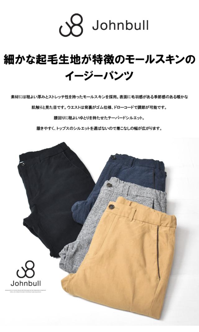 SALE セール Johnbull ジョンブル モールスキン イージーパンツ パンツ テーパード トラウザーパンツ メンズ 送料無料 21600
