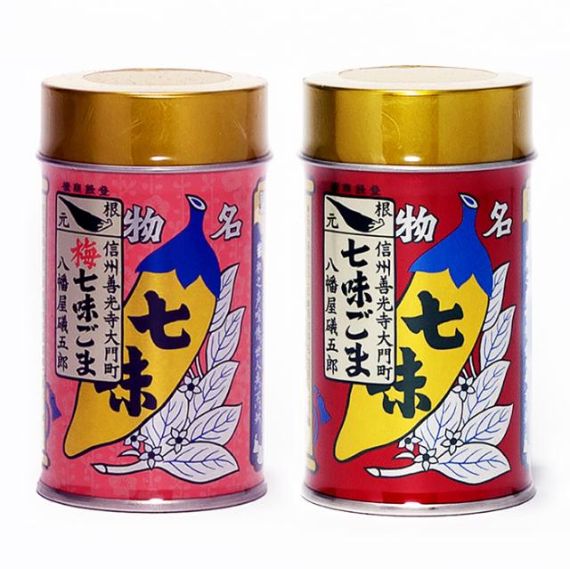 八幡屋礒五郎七味ごま缶+梅七味ごま缶の2種セット