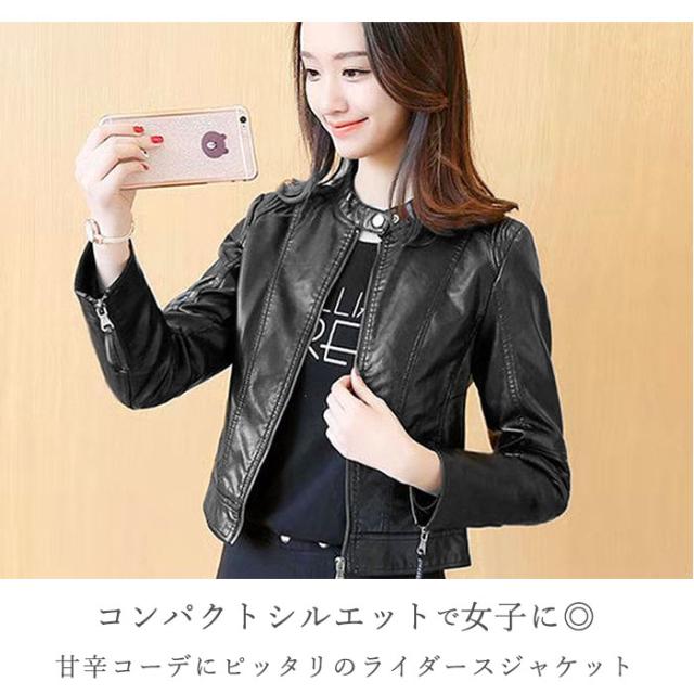 ライダースジャケット レディース 通販 レザージャケット ジャケット ショート ライダース PUレザー 革ジャン おしゃれ シンプル カジュアル 春 秋 シングルライダース シングル 黒 ブラック S M L XL XXL 3XL ライダーズジャケット アウター レディースファッション