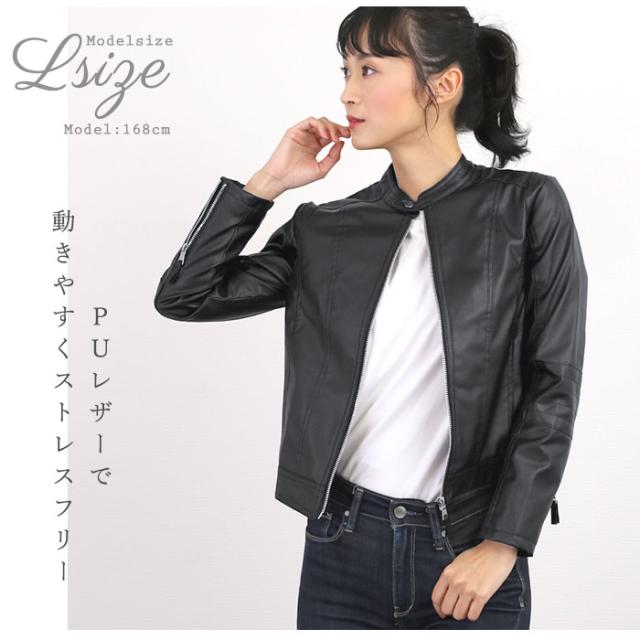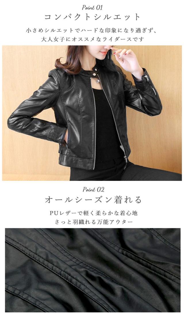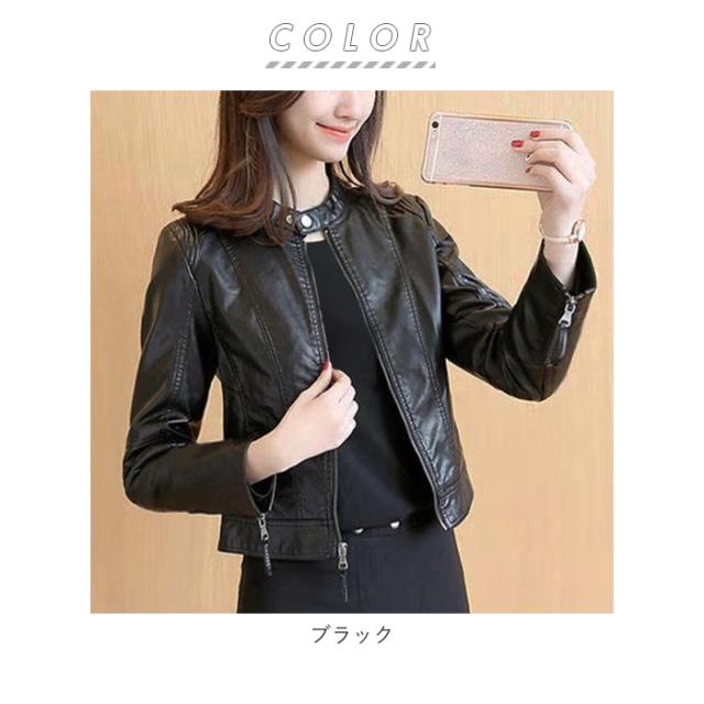 ライダースジャケット レディース 通販 レザージャケット ジャケット ショート ライダース PUレザー 革ジャン おしゃれ シンプル カジュアル 春 秋 シングルライダース シングル 黒