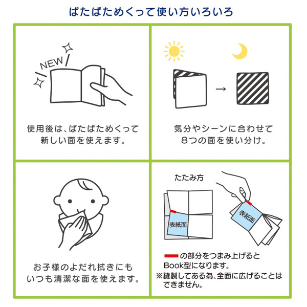 まるで絵本のようにパタパタめくって使えるタオル