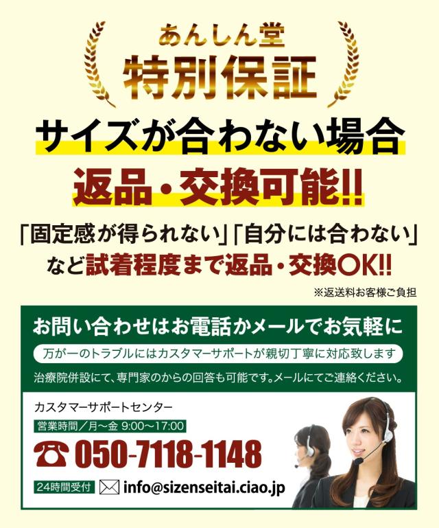 試着程度で合わない場合、返品やサイズ交換も可能です。