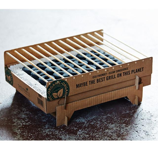 竹炭、火山石、竹、FSC認定段ボールの全て天然素材でできたインスタントグリル。軽くてコンパクト。簡単セットアップ。