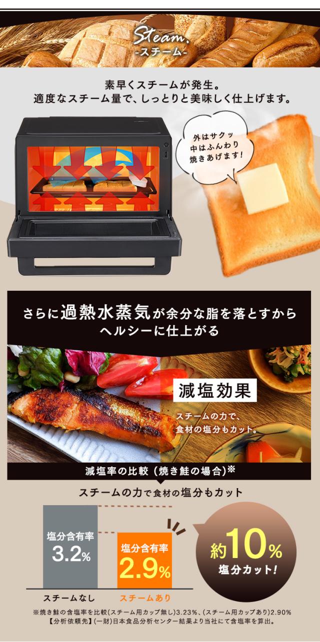 スチーム用カップ付き、過熱水蒸気オーブンレンジ。