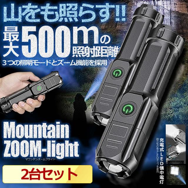 懐中電灯 2点セット ズーミングライト 強力照射 USB充電式 爆光 マルチ 3つの点灯 照明 ランプ 緊急 災害 500m 照射