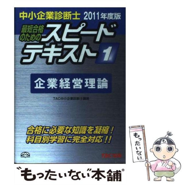 商品名:【中古】 最短合格のためのスピードテキスト 中小企業診断士 1 2011年度版 企業経営理論 / TAC株式会社 (中小企業診断士講座)、タック / TAC出版事業部 [単行本]【メール便送料無料】
