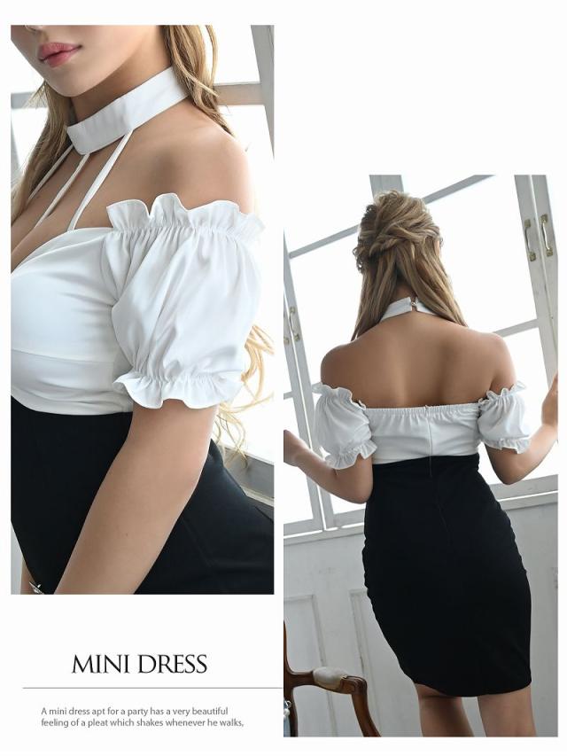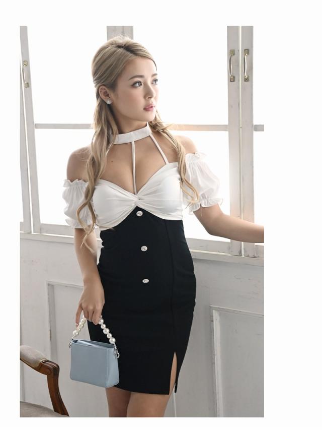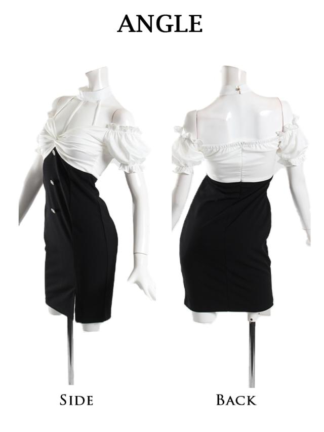 キャバドレス キャバ ドレス キャバクラ ミニドレス パーティードレス Ryuyu オフショル バイカラー モノトーン 韓国風