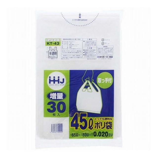 【単品3個セット】 ハウスホールドジャパン KT43取っ手付きポリ袋45L半透明30枚(代引不可)