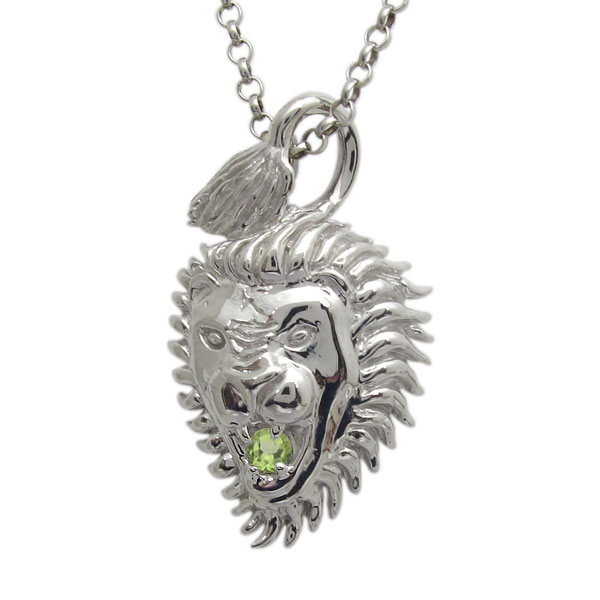 ライオンネックレス ペリドット 8月誕生石 メンズ ペンダント プラチナ