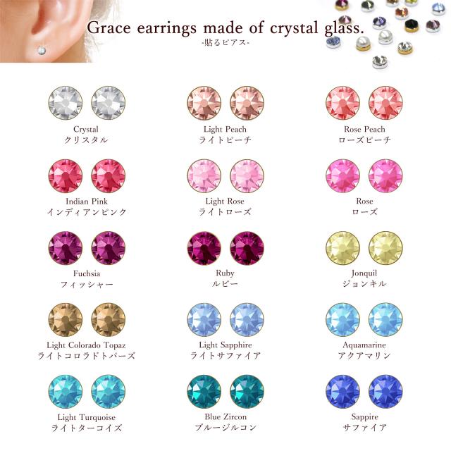 grace貼るピアス シンプルジュエリー ゴールド土台 1セット 好きな色が選べる 貼り替えテープ付き クリスタルガラス使用 全28色 ノンホールピアス ラインストーン パール シールピアス レディース イアリング シールピアス 選べるカラー
