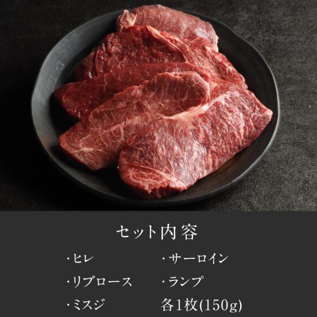 内容量:合計750g (ヒレ150g、サーロイン150g、リブロース150g、ランプ150g、ミスジ150g)