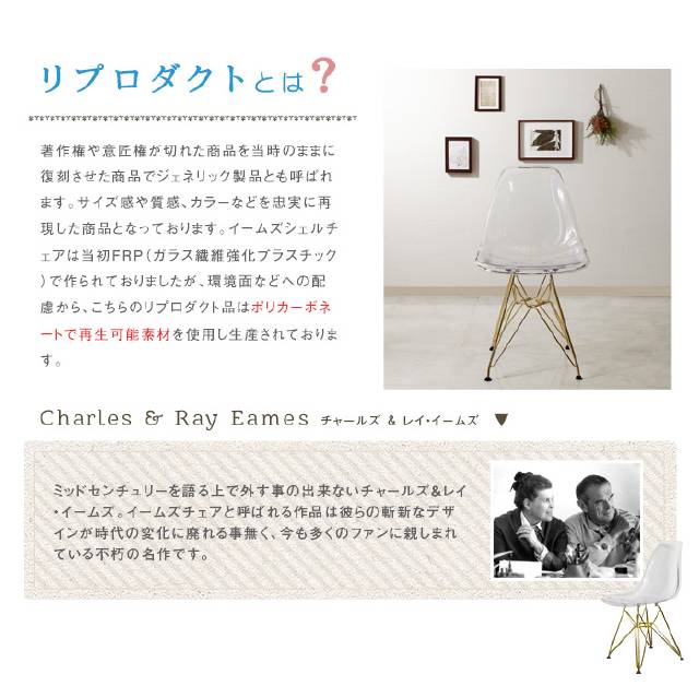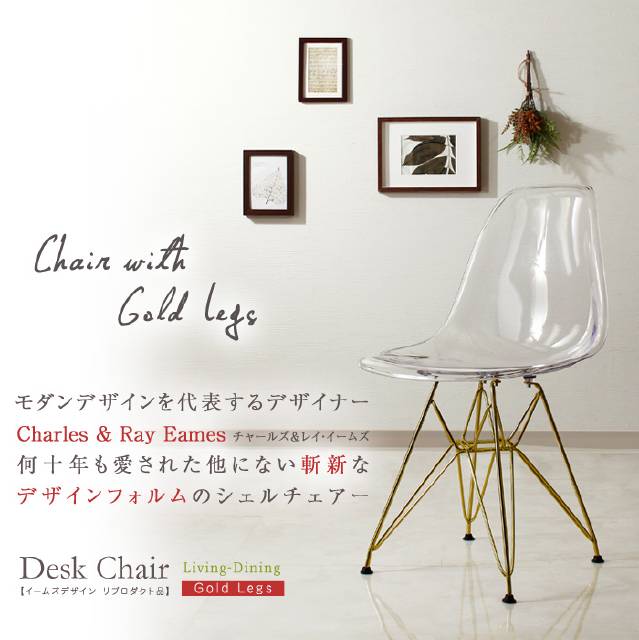 シェルチェア デザインチェア クリア イームズ イームズデザイン リプロダクト品 ゴールド脚 組立品