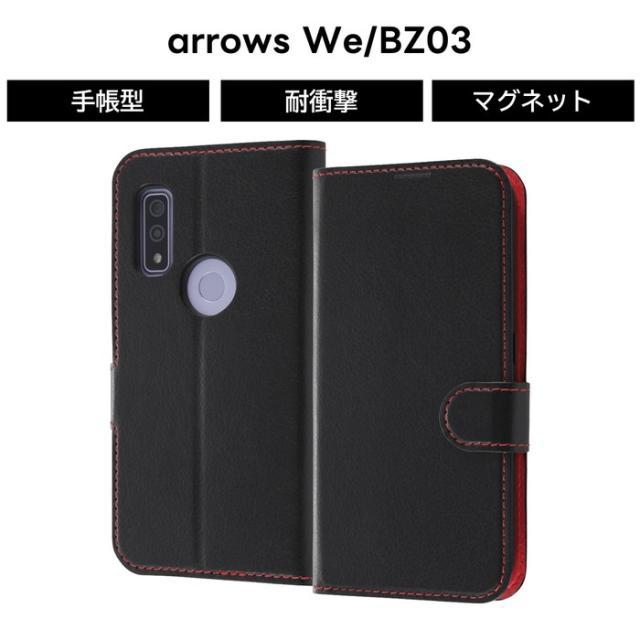 arrows We BZ03 耐衝撃 手帳型ケース シンプル マグネット ブラック レッド カード収納