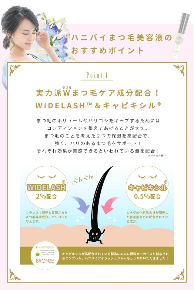 WIDELASH(TM)とキャピキシル(TM)をしっかり配合!