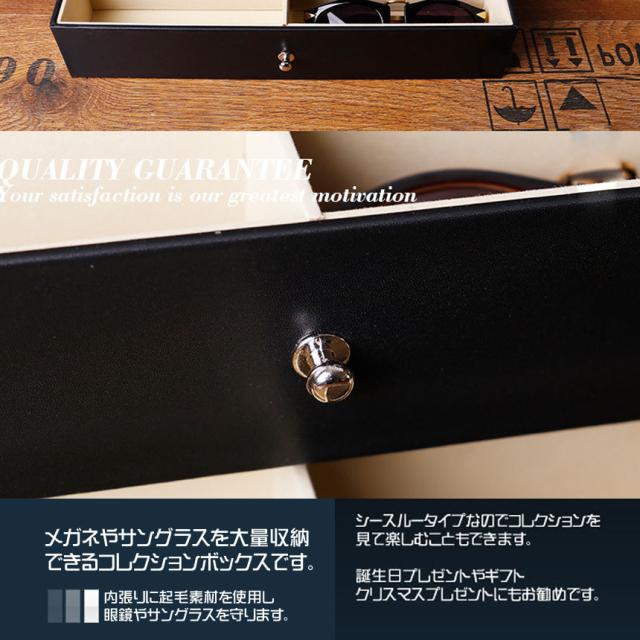 【メガネケース】眼鏡やサングラス等を収納・展示できます,保管にも適したタイプで、蓋をすれば日焼けや大切なコレクションへの被害、損傷を防げます。【素材】内張りに起毛素材を使用し、眼鏡やサングラスを守ります。