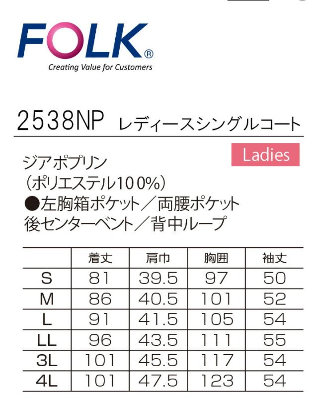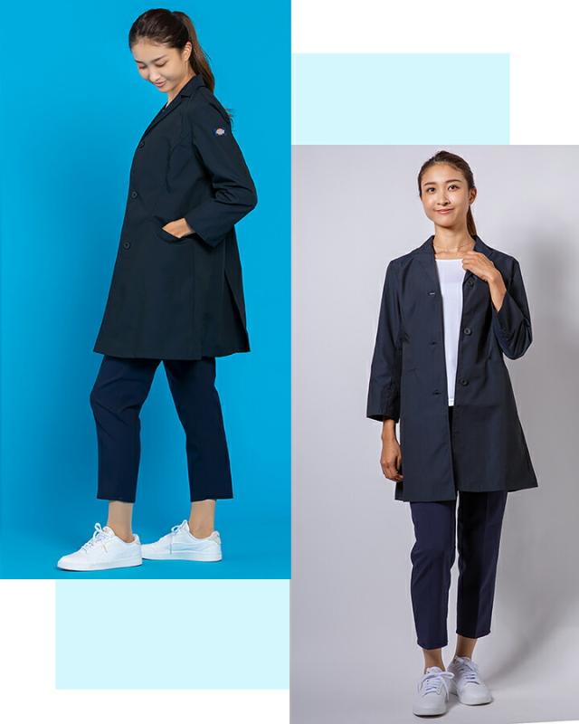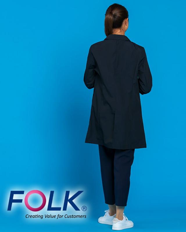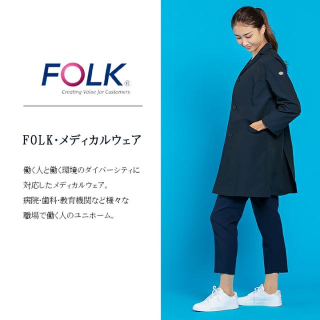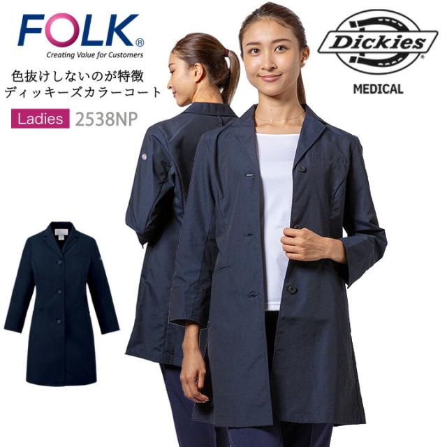 フォークコート 医療用 白衣 ディッキーズ 女性用 レディース ドクターコート ディッキーズ カラー白衣 FOLK 2538NP 白衣 長袖 医療 医師 歯科医 薬剤師 病院 フォーク 制電 ネイビー