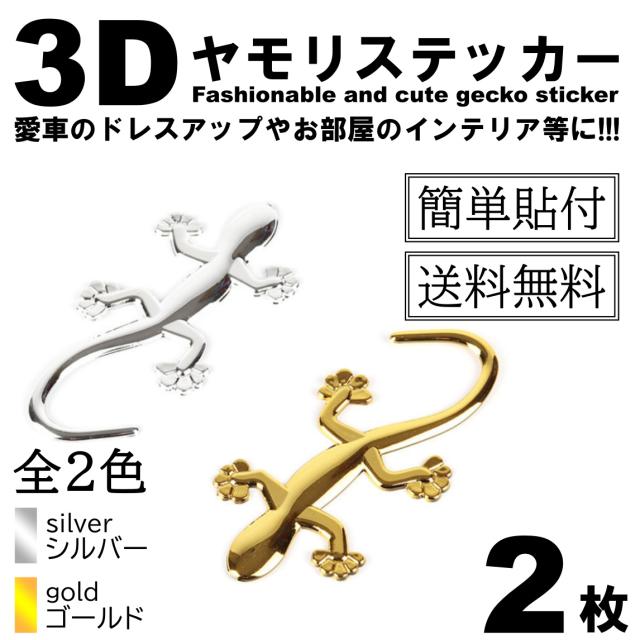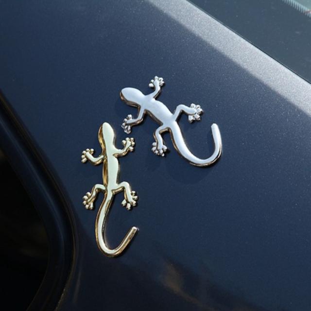 2枚 全2色 ヤモリ トカゲ エンブレム ステッカードレスアップ 車 金 銀 ゴールド シルバー カスタム カー用品