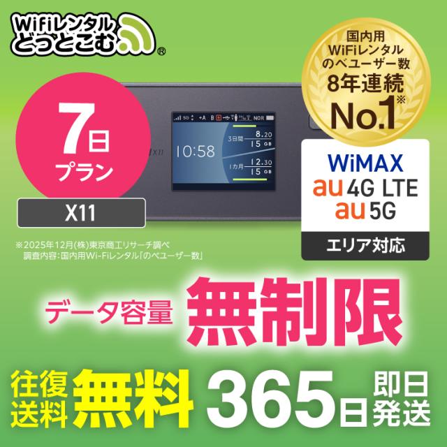 ポケットwi-fi レンタル 無制限 au WiMAX 5G対応 7日 X11 往復送料無料 即日発送 エーユー ワイマックス ポケットwifi wi-fi ルーター テレワークwifi リモートwifi 引越しwifi