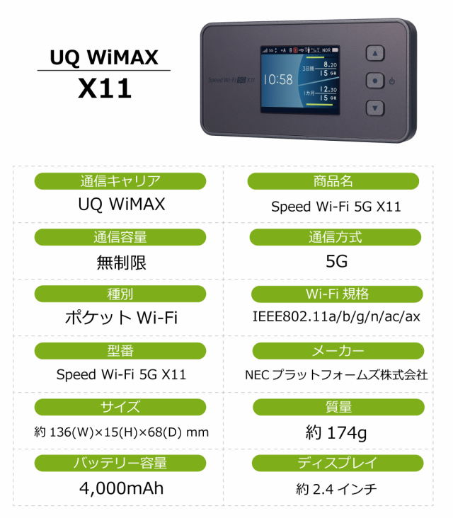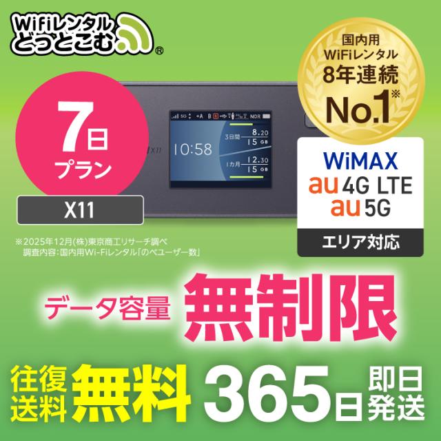 ポケットwi-fi レンタル 無制限 au WiMAX 5G対応 7日 X11 往復送料無料 即日発送 エーユー ワイマックス ポケットwifi wi-fi ルーター テレワークwifi リモートwifi 引越しwifi