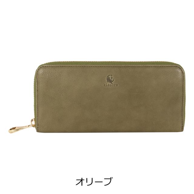 【レビュー投稿で+5%還元】キソラ 長財布 ラウンドファスナー 本革 レザー オリーブヌメ レディース KIEN-159 日本製 kissora ロングウォレット ヌメ革 国産牛革 大人 シンプル 開運 一粒万倍日 クリスマス_mp クリスマス_wp