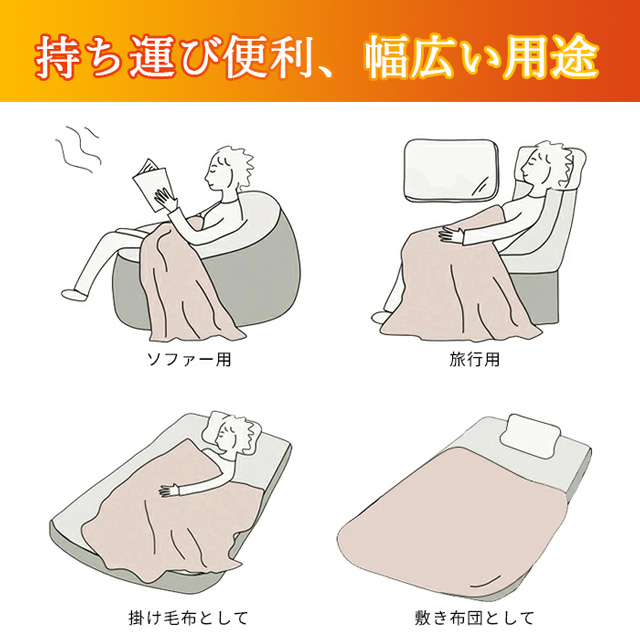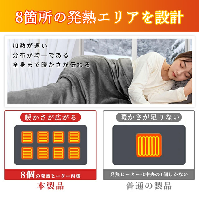 均一的に毛布を温め、肩にかけて体を温めることができます。普通の毛布は中の一つの発熱エリアだけで、全面的な保温ができません。