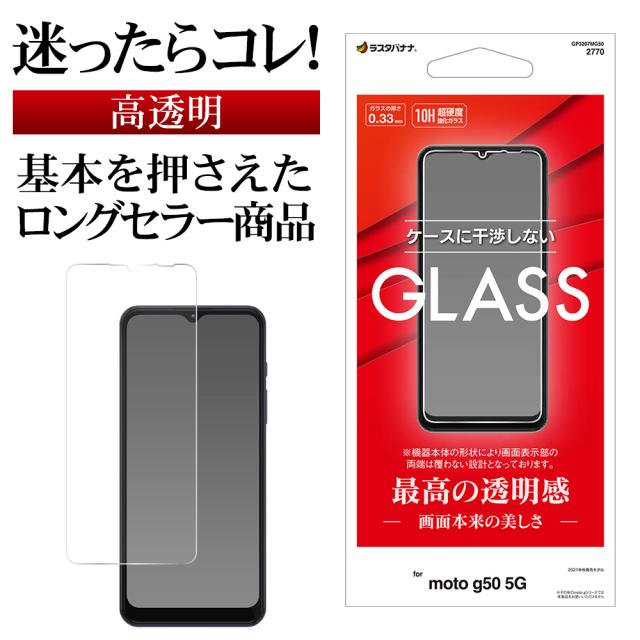 【送料無料】ラスタバナナ Motorola moto g50 5G ガラスフィルム 平面保護 高光沢 高透明 クリア 干渉しない 干渉レス 0.33mm 硬度10H モトローラー モトg50 保護フィルム GP3207MG50