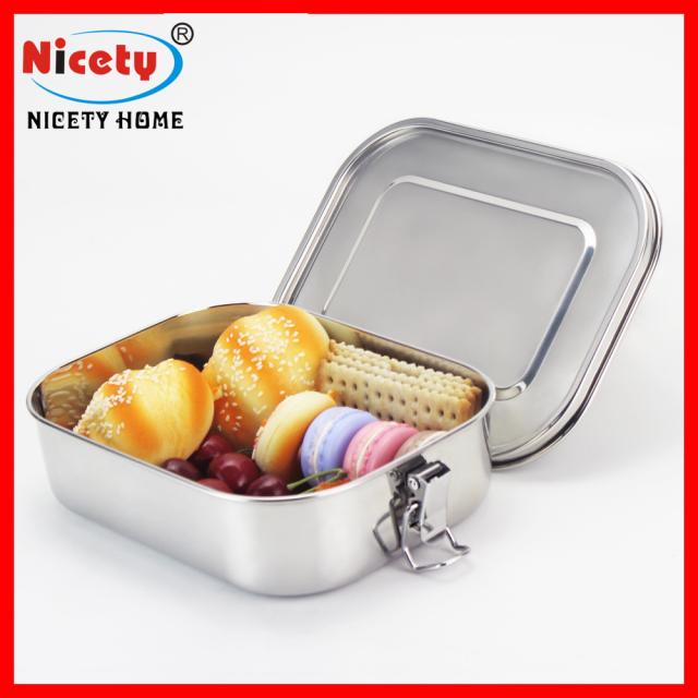 スクエア304ステンレススチール保存ランチボックス、シリコンシールリング付きリークプルーフフードコンテナベントボックス