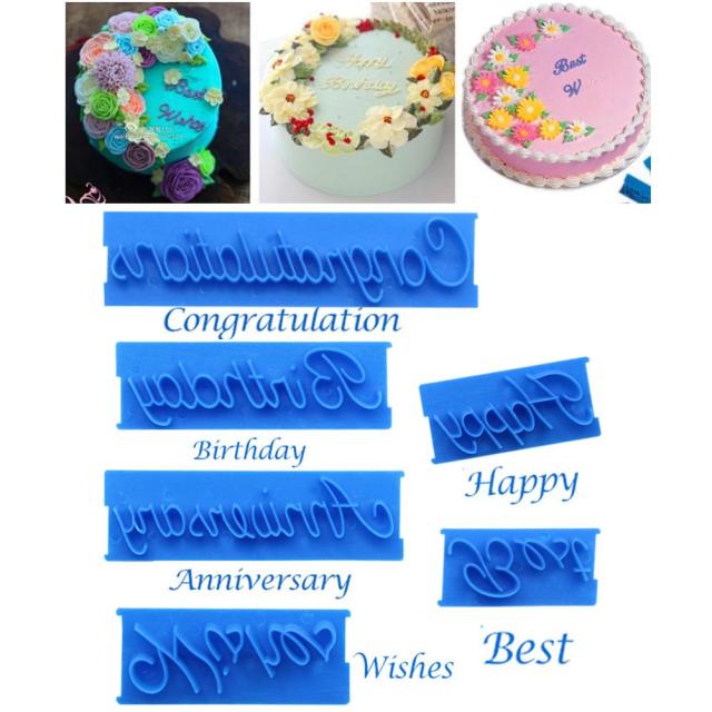 6ピース/セット文字モールドフォンダンケーキエンボスハッピーバースデー最高の願いベーキングモールド装飾ツール