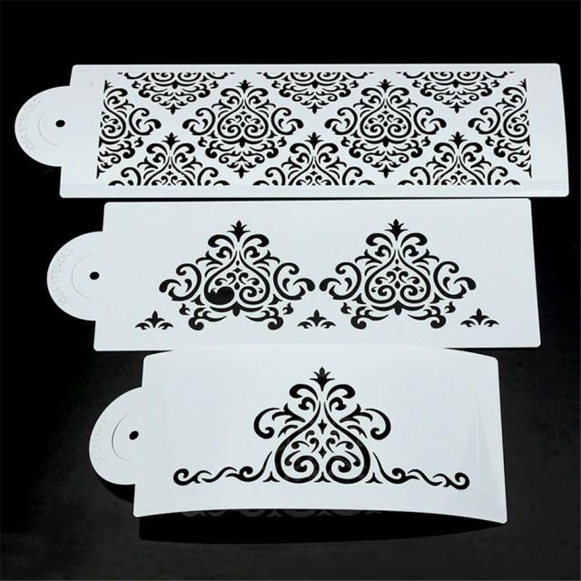 3個/セット半透明ケーキエッジパターンモールドPVCステンシルエアブラシキッチンアクセサリー