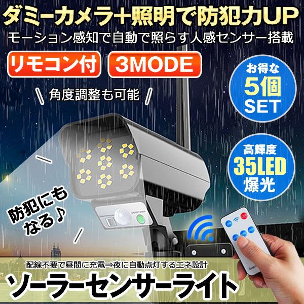 センサーライト 5個セット 屋外 リモコン付き ダミーカメラ風 防犯カメラ風 ソーラー 防犯ライト 自動点灯 人感センサー 照明 防犯 玄関 壁掛け 防水 DAMIA