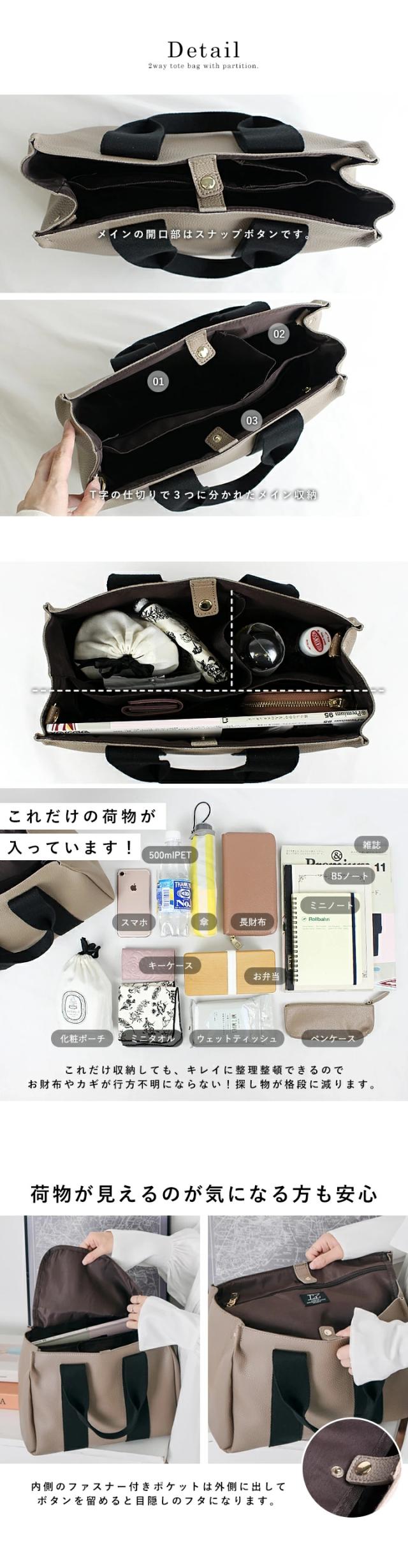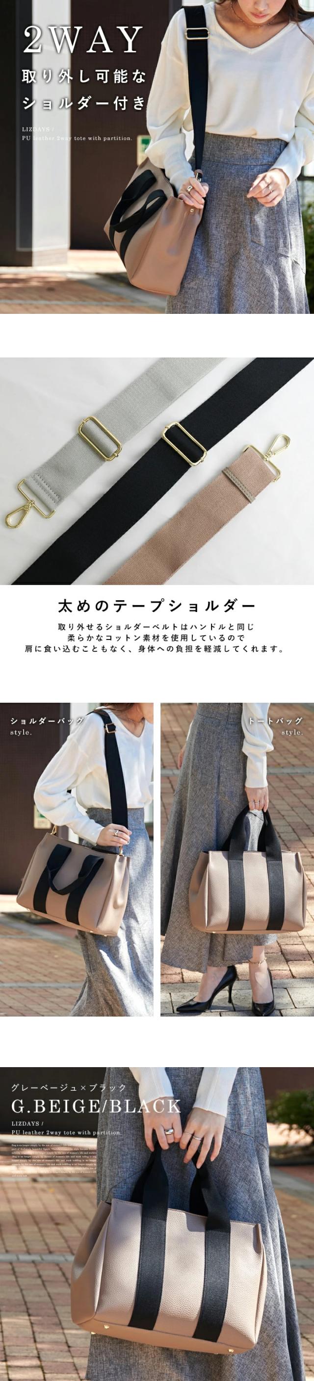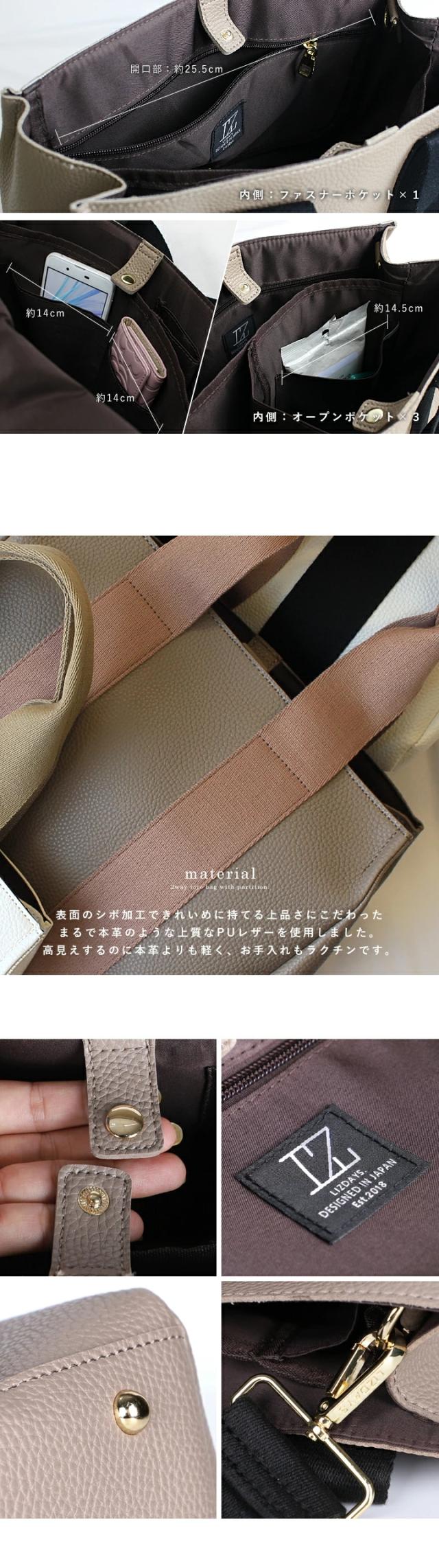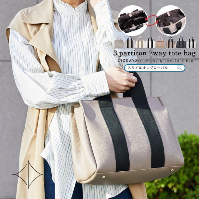 トートバッグ 仕切り レディース 2way ショルダーバッグ 大容量 トート インナーバッグ バッグインバッグ おしゃれ LIZDAYS リズデイズ ショルダー 3つ仕切り 整理整頓 B5 斜めがけ 肩かけ フラップポケット シンプル オフィス【lz-51303】
