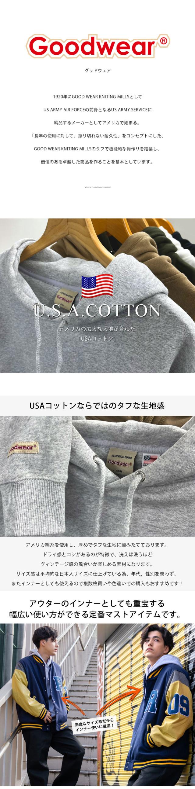 パーカー メンズ スウェット Goodwear グッドウェア トップス USAコットン スエット プルパーカー フーディー カジュアル ヘビーウェイト コットン 厚手 トップス インナー 無地 定番 アメカジ ファッション 秋服 秋物 秋冬 冬物 冬服 ストリート ストリート系 ストリートファッション 韓国 韓国系 韓国ファッション 父の日 誕生日 プレゼント 贈り物 ギフト配送について