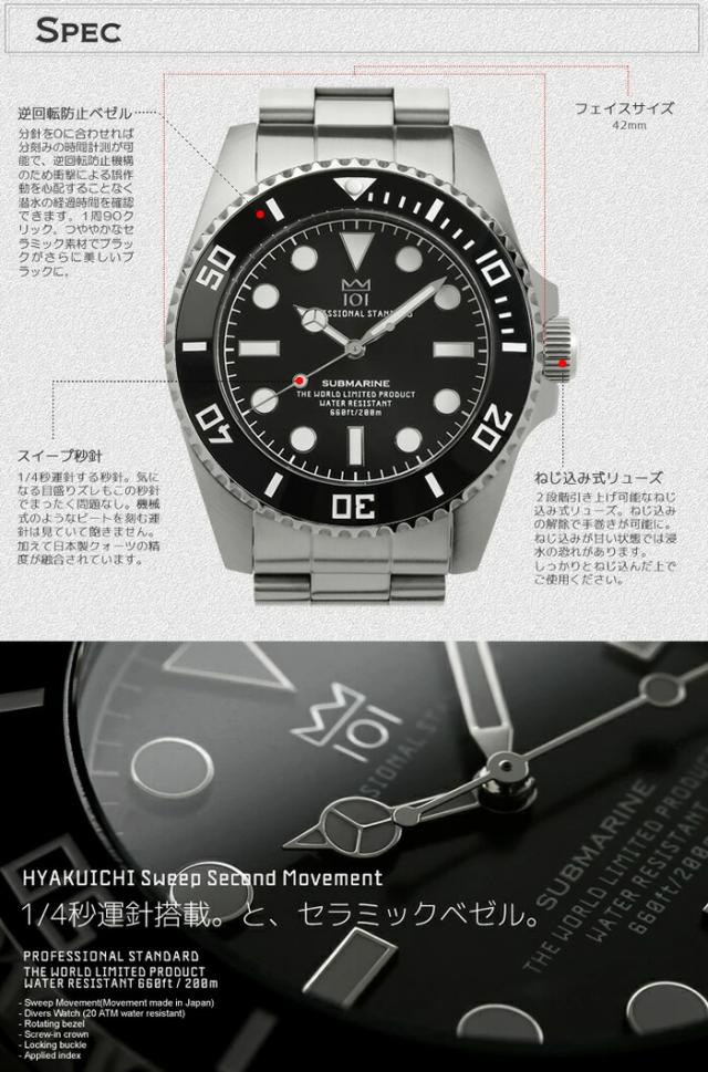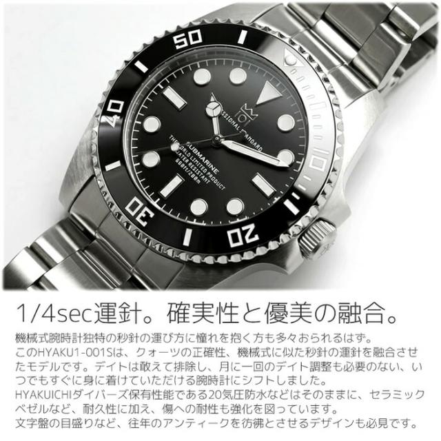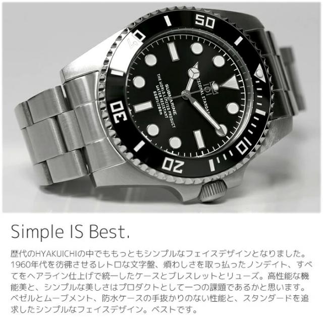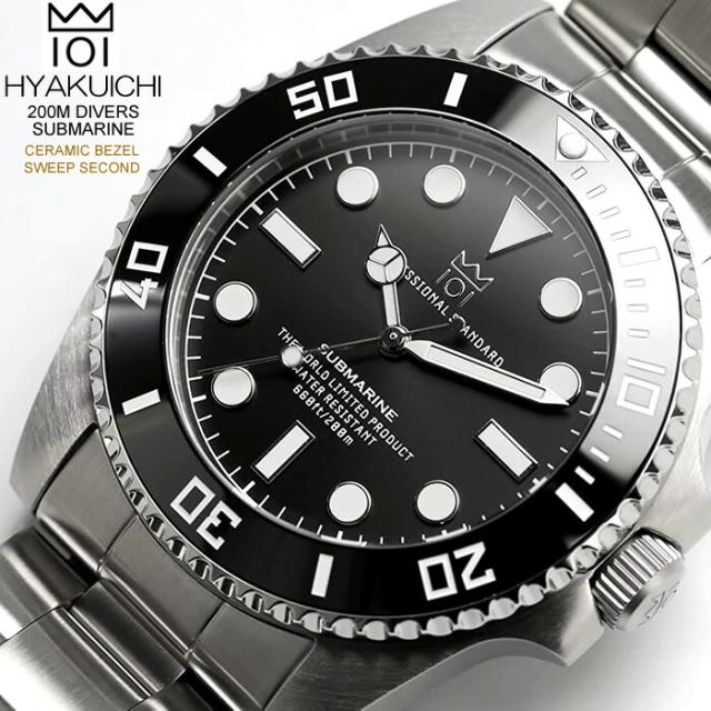HYAKUICHI ヒャクイチ 101 ダイバーズウォッチ 腕時計 メンズ 防水 限定モデル 20気圧防水 セラミックベゼル スイープセコンド ブラック ノンデイト ブランド 人気 ランキング ギフト