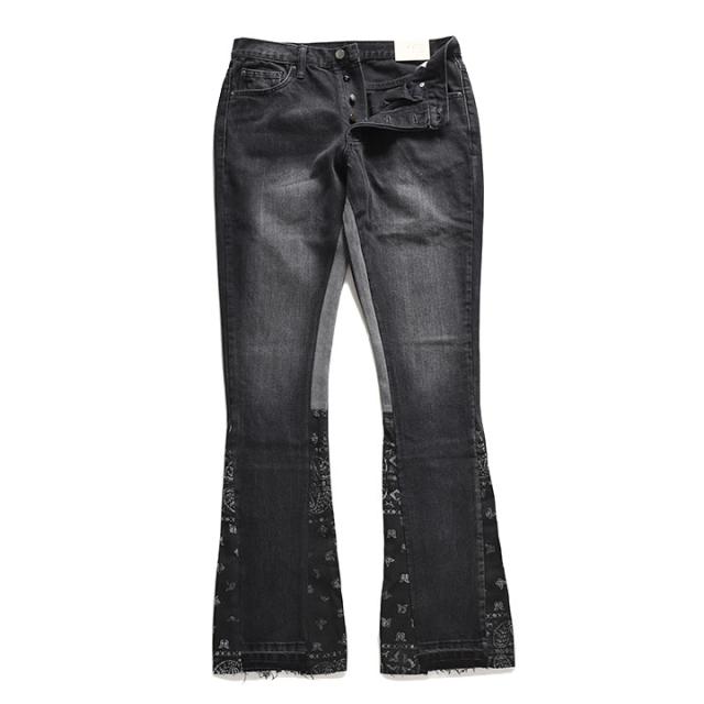 mnml デニム ジーンズ メンズ 春夏秋冬用 黒 ミニマル ジーパン Gパン パンツ スリム 細身 無地 ペイズリー柄 フレアパンツ フレア ブーツカット フレアージンズ ウォッシュ b系 ヒップホップ ファッション ストリート系 ハイ ブランド 21ML-AW223D