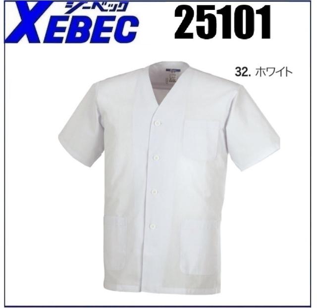 半袖上衣 (衿ナシ) ジーベック 25101 XEBEC 春夏 M〜5L 抗菌防臭加工 帯電防止素材 日本製生地 (ネーム刺しゅうできます)