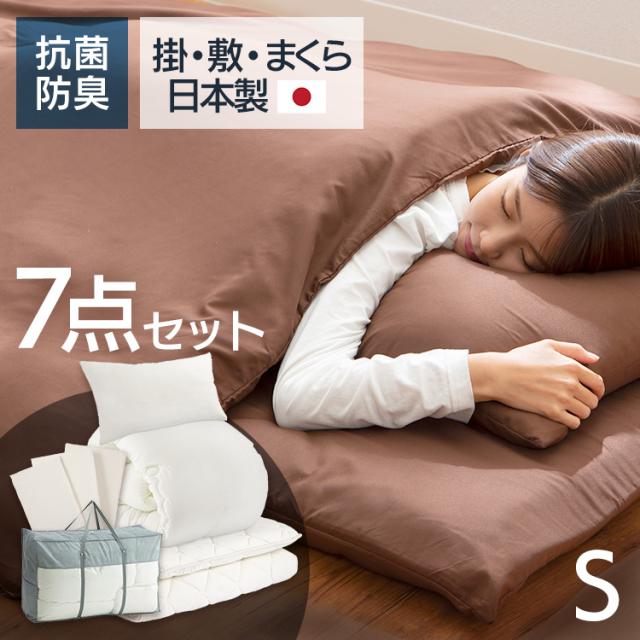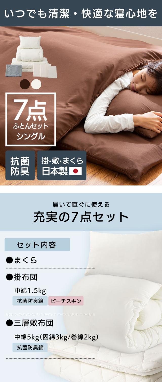【7点セット】 布団セット シングル 布団 10PS2536-7SET 日本製 抗菌 防臭 掛け布団 敷き布団 枕 カバー 専用収納バッグ 清潔 国産 新生活 来客用 買い替え カバー付き 収納袋付き 組布団